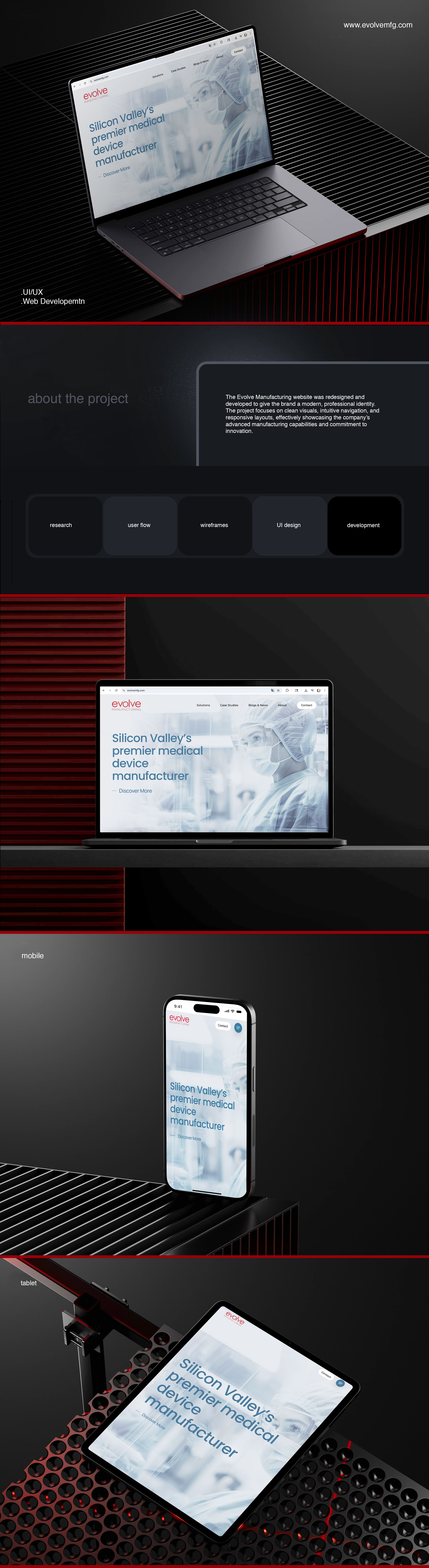Scope of work: UX / UI / Website design & Development l Country: Silicon Valley, USA l Year: 2025 l www.evolvemfg.com